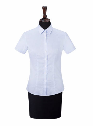女式短袖藍(lán)條紋全棉免燙襯衫